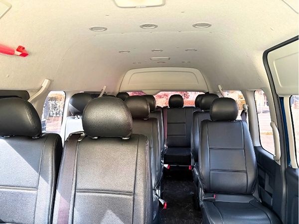 車両番号 福岡230あ1300(コミューター車) 座席数 正13席 年式/車名 令和元年/ハイエース 車高 228cm 長さ 538m トイレ サロン USB カラオケ 資料ダウンロード スクロールできます その他備品 後ろ座席を倒すと、10名乗り 他の車両を見る 大型バス25~45名の利用におすすめ 中型バス15~25名の利用におすすめ 小型バス10~20名の利用におすすめ その他車両小人数での利用におすすめ 車両一覧 コミューター